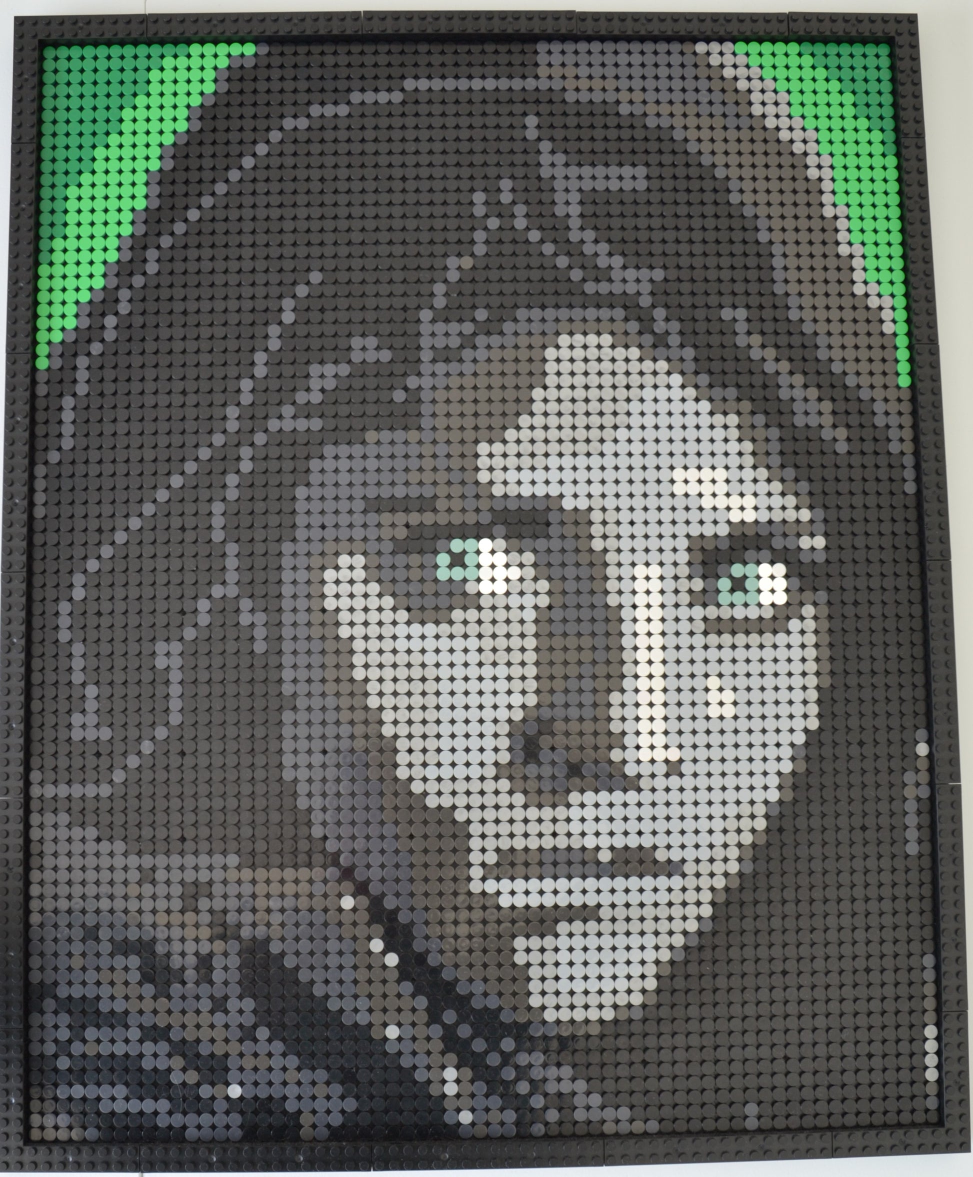 Creation of the portrait of the Afghan girl with green eyes in 54x67 cm with 5150 bricks.